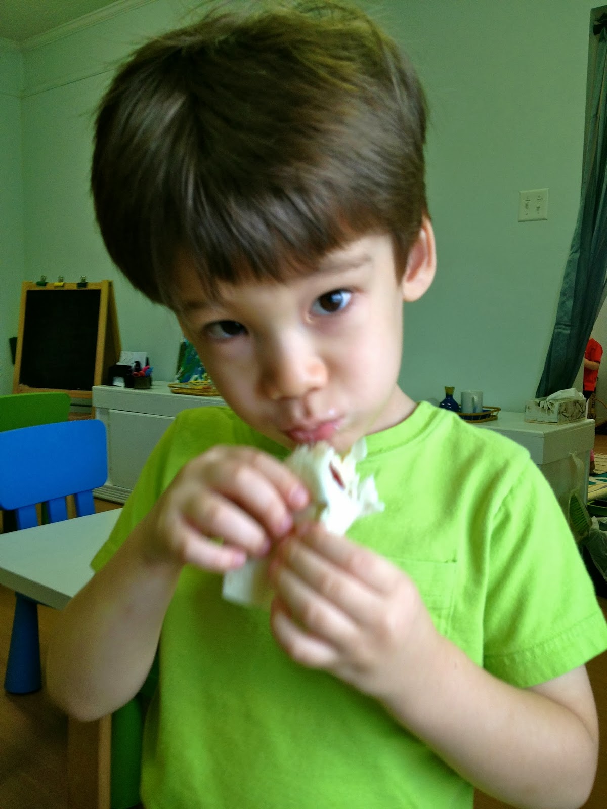 There is just so many things you can do with apples! Today we made "Apple Burritos" with only 4 ingredients- tortillas, cinnamon, cream cheese, and of course, apples! The children were lined up to do this snack preparation work and we loved the opportunity to share with each other!